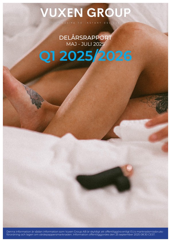 Första kvartalet 2025/2026 markerar en viktig milstolpe i vårt pågående arbete med att utveckla Vuxen Group. Vi levererar en omsättning på 52,2 MSEK +6,1 % och ett stärkt EBITDA-resultat om 4,6 MSEK (3,9), samtidigt som vi accelererar arbetet med att renodla och fokusera koncernen mot vårt kärnområde – sexuell hälsa. Kvartalet visar att vår strategi att prioritera lönsamhet och fokusera på våra mest värdeskapande verksamheter ger konkreta resultat.